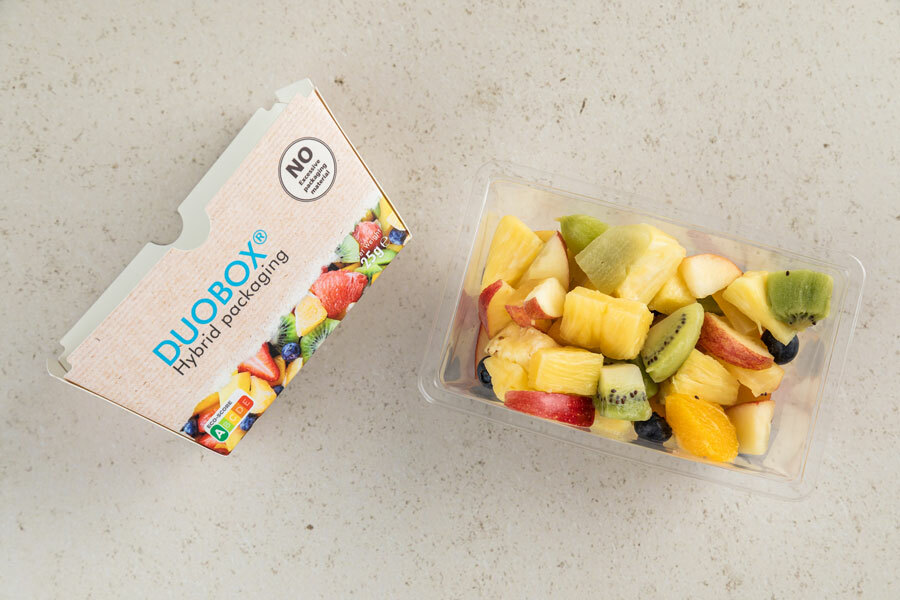 We bedachten de Duobox. De Duobox is geschikt voor vis, vlees, gevogelte en kant-en-klaarmaaltijden. Het maakt gebruik van een inlay van dunwandig plastic dat omhuld is door hoogwaardig karton.